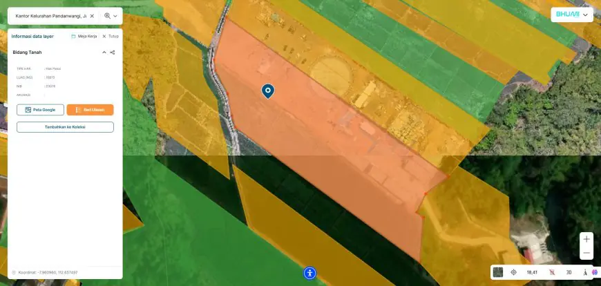 lahan WTP Pandanwangi menurut website BHUMI ATR BPN