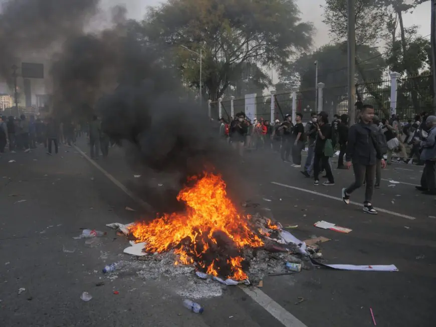 Massa aksi juga membakar ban dan beberapa benda-benda di sekitar gedung parlemen (foto: An Mei)
