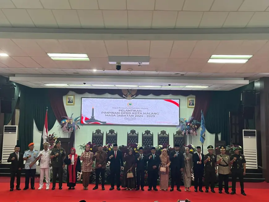 Pelantikan pimpinan DPRD Kota Malang dihadiri oleh Pj Wali Kota Malang Iwan Kurniawan, jajaran Forkopimda Malang Raya, serta kepala OPD Pemerintah Kota Malang.